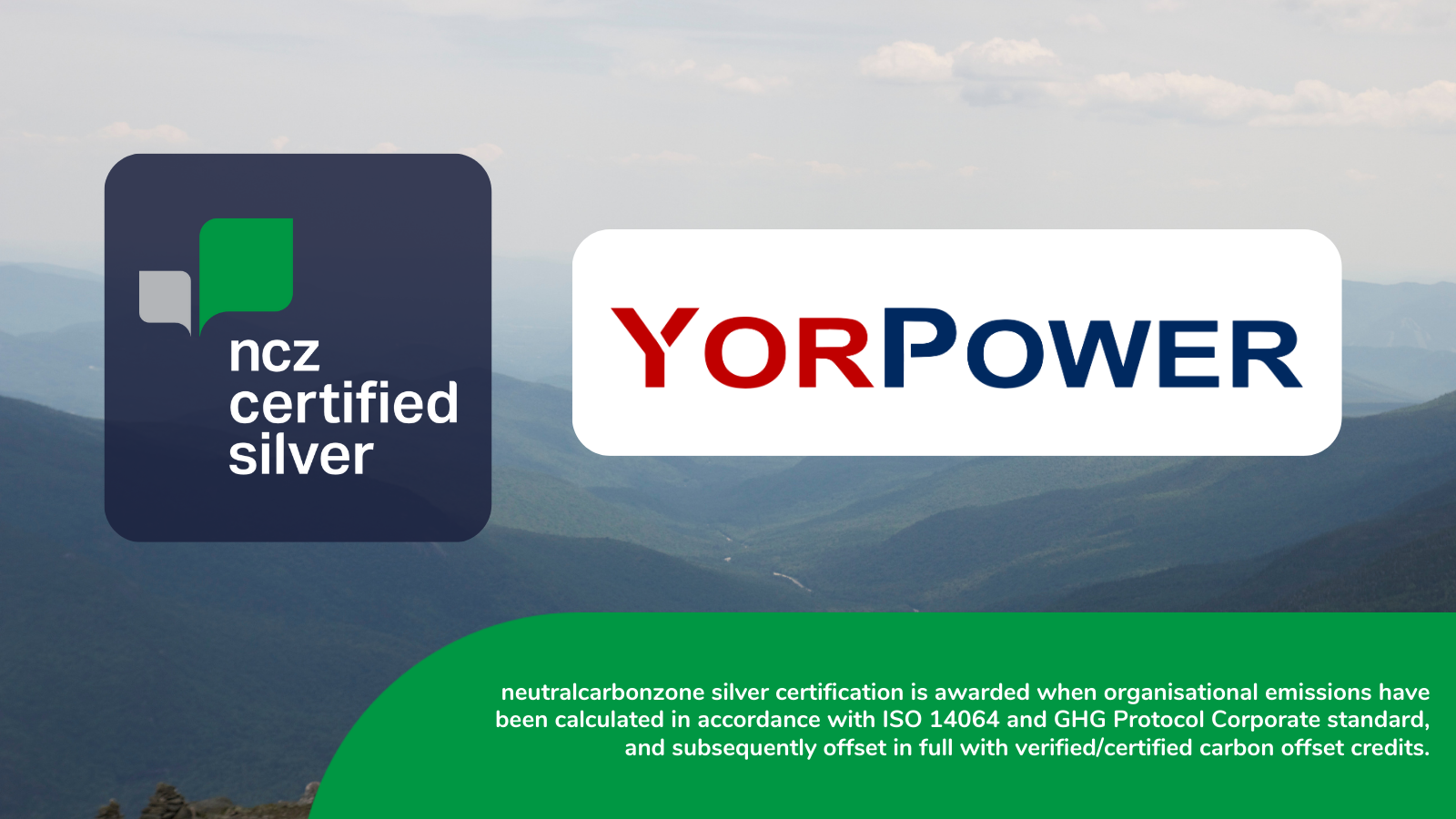 YorPower are happy to announce we have received a Silver Certification for our efforts to become a Carbon Neutral organisation. This certificate is awarded to companies that achieve carbon neutrality from an organisational emissions perspective.
